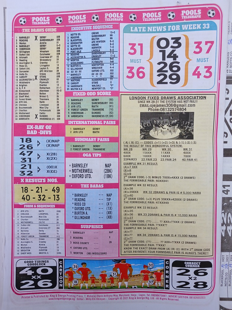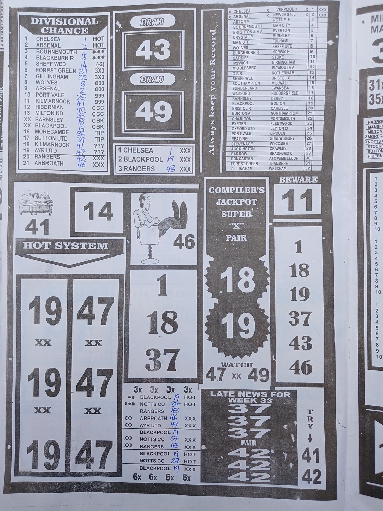Week 34 late news papers 2024: Here we provide you with the best football pools papers such as Dream International Research (comes with Late News), Fortune ‘X’ Matrix, and Dream International Fixtures, we publish the world’s leading weekend football pools forecasting papers poised to boost your winning chances. Apart from CBK papers we also publish late news papers like Dream International Research and Bigwin Soccer.
