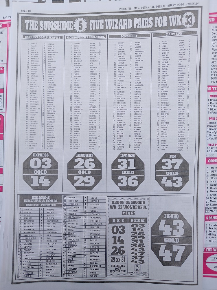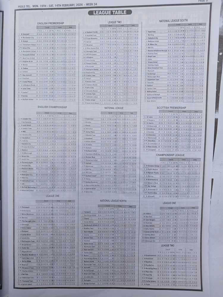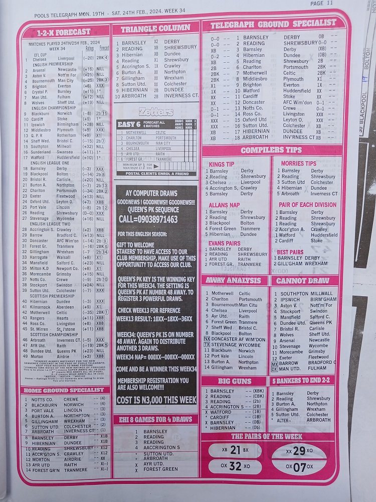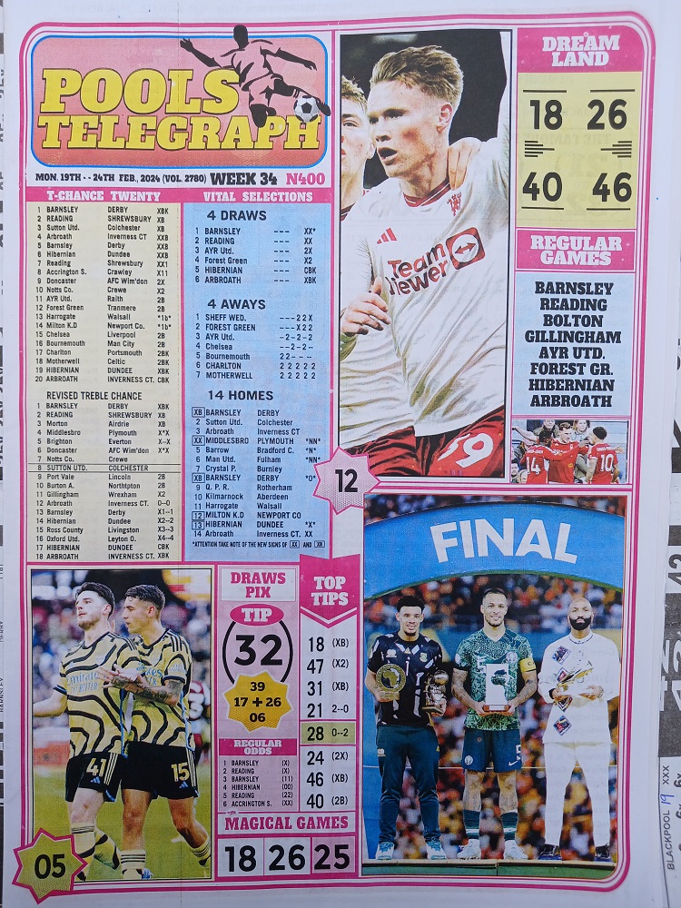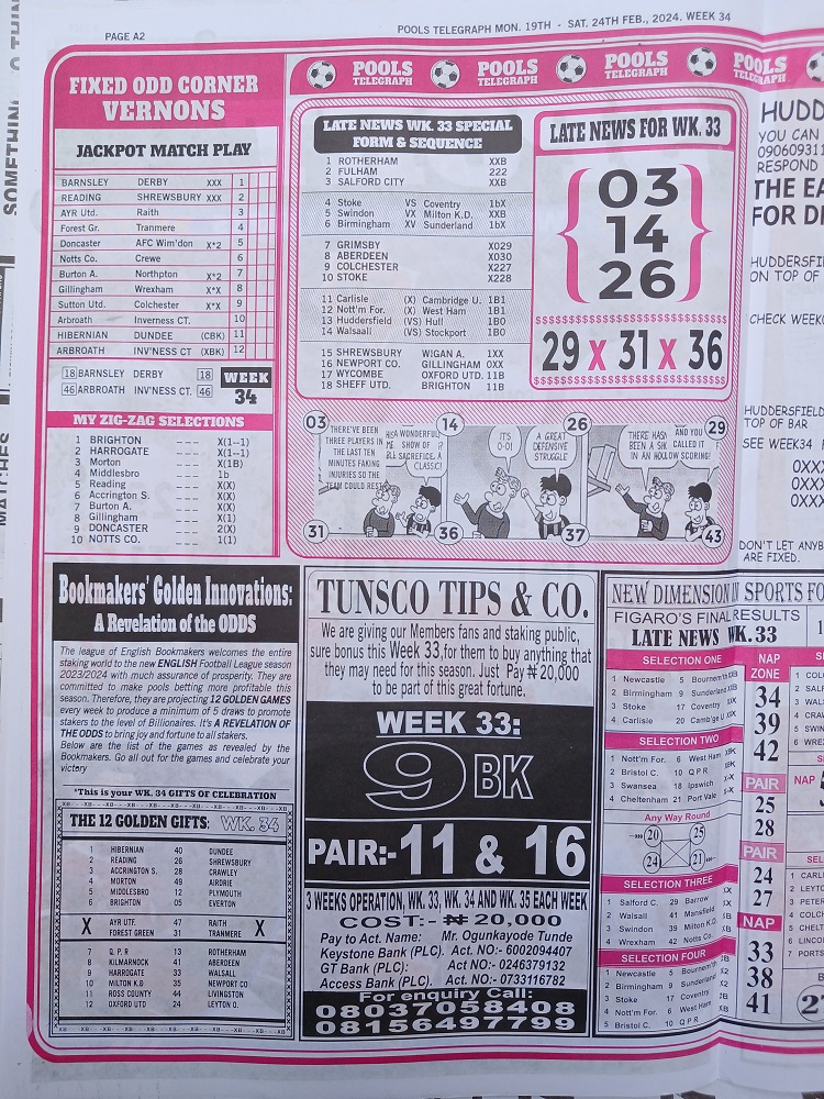 Week 34 Bigwin Soccer and Pools Telegraph Pool Late News Papers 2024