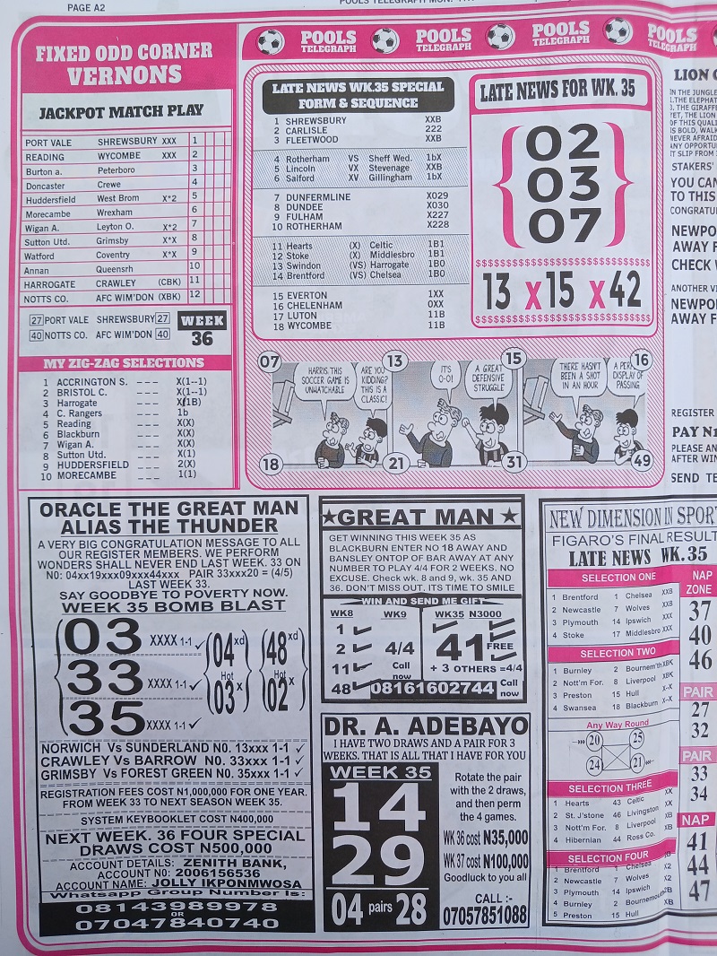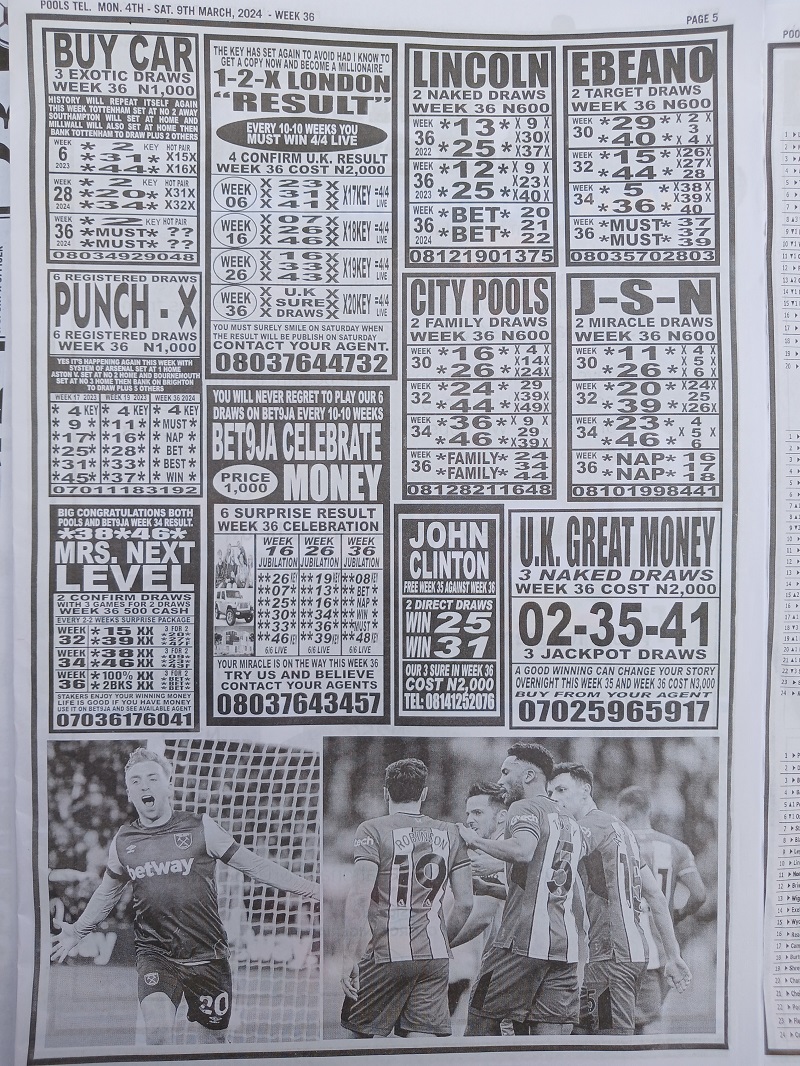 Also See: Week 36 Pool Late News Papers 2024: Bigwin Soccer, Pool Telegraph